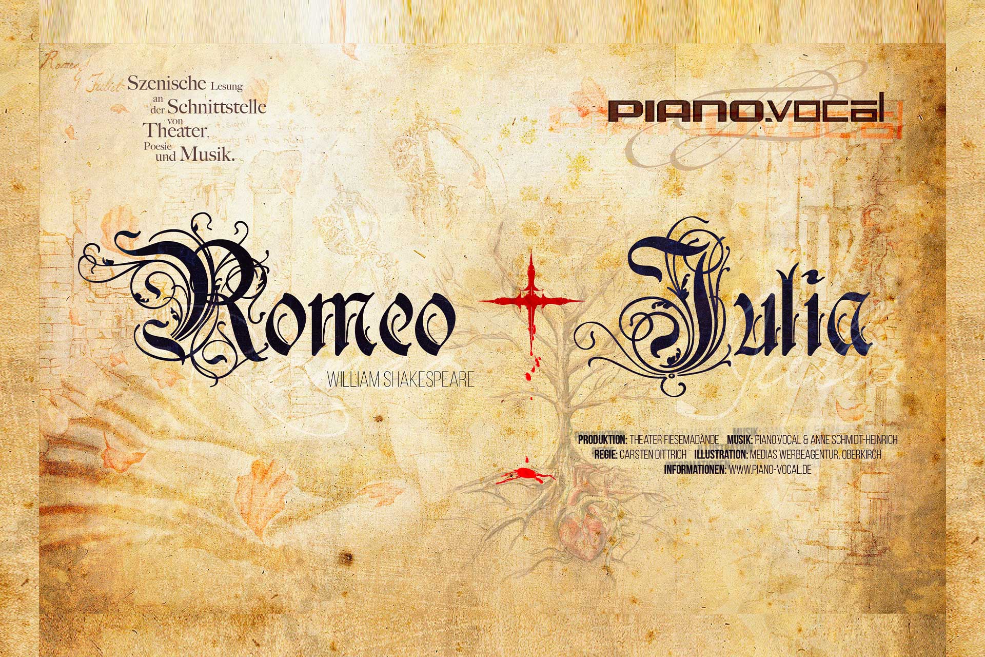 Mit einfühlsamen Popballaden, romantischen Cello Klängen und natürlich Literatur gehen die Künstler dem Mythos der berühmtesten Liebesgeschichte der Welt auf den Grund. Hierbei zeigen sie, dass Shakespeares Werk bis zum unvermeidlichen, tragischen Ende ein durchaus heiterer, lebenslustiger Reigen ist. Bei dieser szenischen Lesung an der Schnittstelle von Musik, Literatur und Poesie kommen auch Klappmaulpuppen sowie Schattenfiguren zum Einsatz. Carsten Dittrich sorgt für einen hohen Schauspielfaktor während Anne Schmidt-Heinrich am Cello sowie piano.vocal sein Spiel in der Spanne zwischen Klassik und Pop wunderbar ergänzen. Lassen Sie sich mitreißen von einem Mix aus Pop, Klassik, Poesie, Schau- und Figurenspiel.